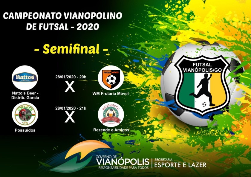 Hoje logo mais às 20:00 horas no ginásio Ismael Dias Pereira em Vianópolis-GO, Grande Semifinal do Campeonato Vianopolino de futsal 2020, categoria Adulto !!!!