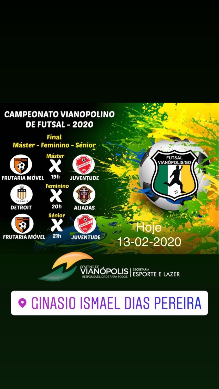 Hoje logo mas as 19:00 horas no ginásio Ismael Dias Pereira em Vianópolis, grande finais do Futsal Masters, Feminino e Sênior!!!