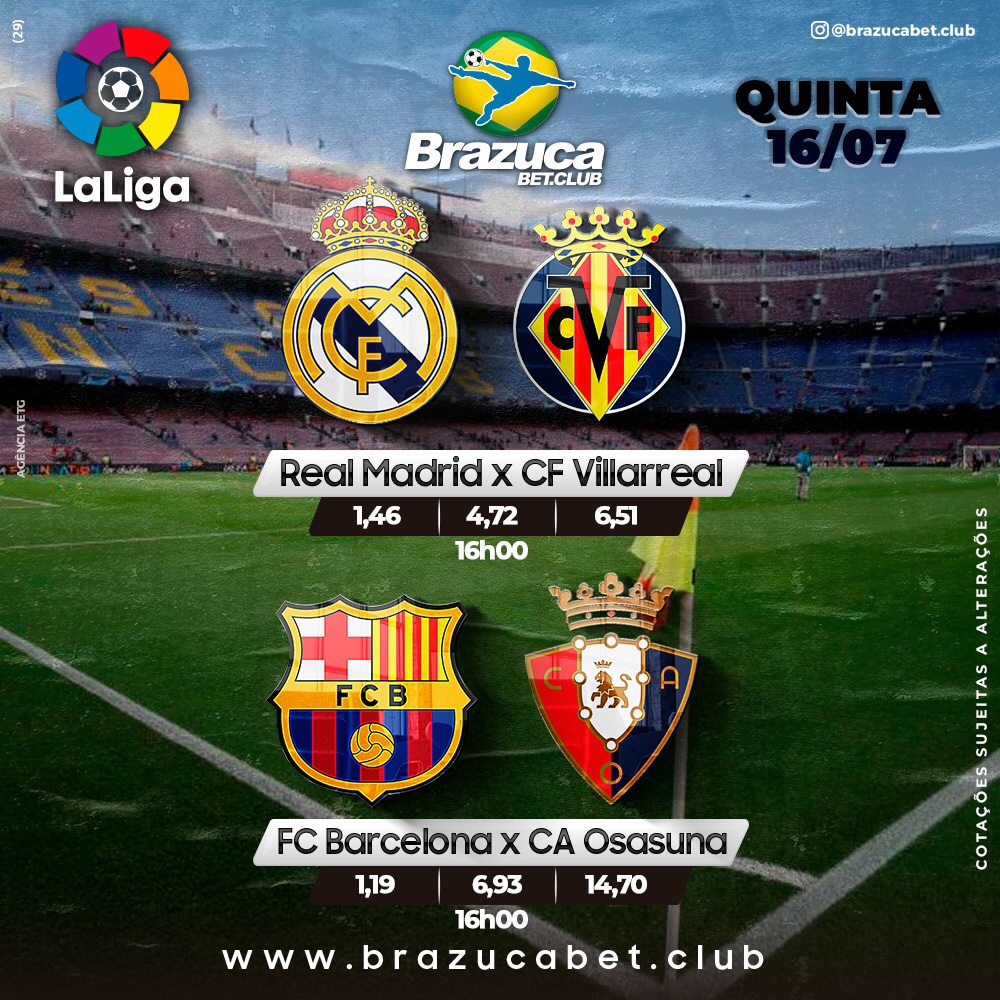 Hoje quinta-feira o Real Madrid joga com as mãos na taça do campeonato espanhol, Barcelona também joga e conta com um tropeço do Real para chances do título !!