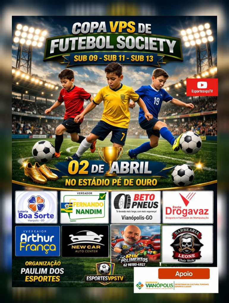 A Copa Vps de futebol society, movimentou a meninada nas categorias sub 09,11,13 e 15, com os jogos no estádio Pé de Ouro contou com mais de 170 crianças do município de Vianópolis, das escolinhas Os Feras, Projeto Crescer e Bola pra frente, Copa realizada por Paulo Correa Neto “Paulim dos Esportes” e teve cobertura do canal no YouTube esportesvpstv.
