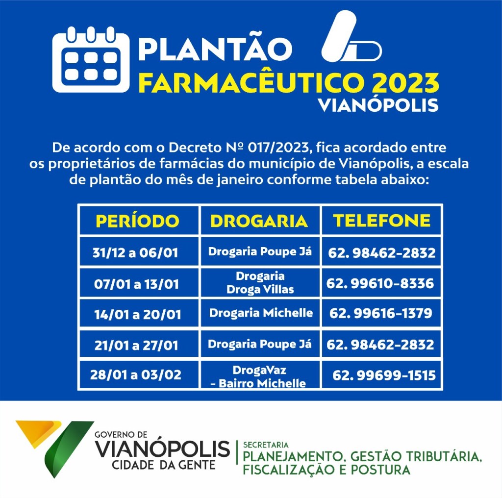 Utilidade pública, Veja qual farmácia está de plantão em Vianópolis-go