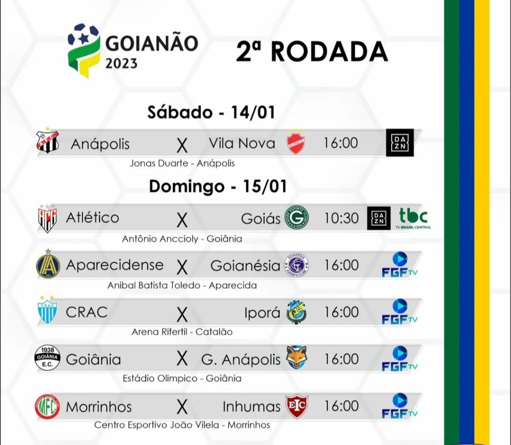Confira abaixo a 2° rodada do Campeonato Goiano, que tem jogo hoje !!!