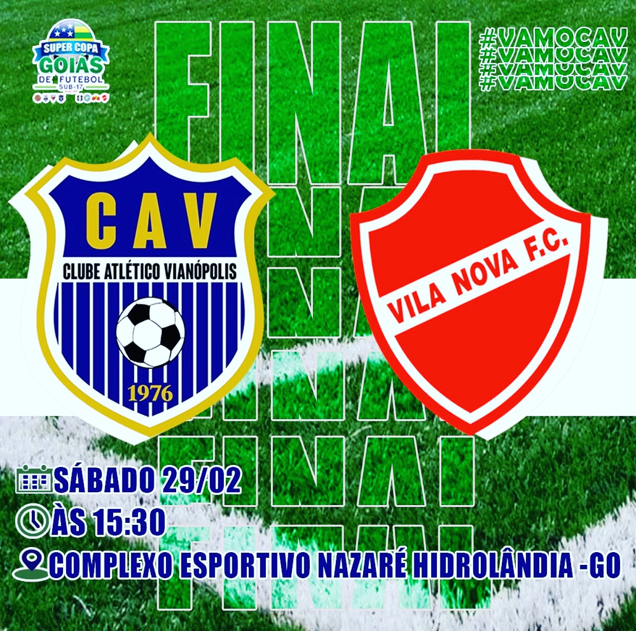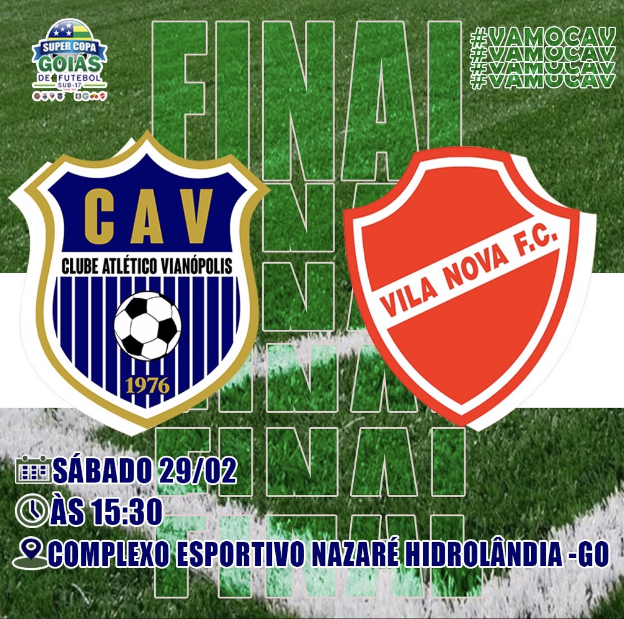 O CAV joga final hoje neste sábado !!! Decisão contra o vila nova pela grande final da Super Copa Goias sub-17. Jogo será transmitido pela rádio Líder FM 87,9 .