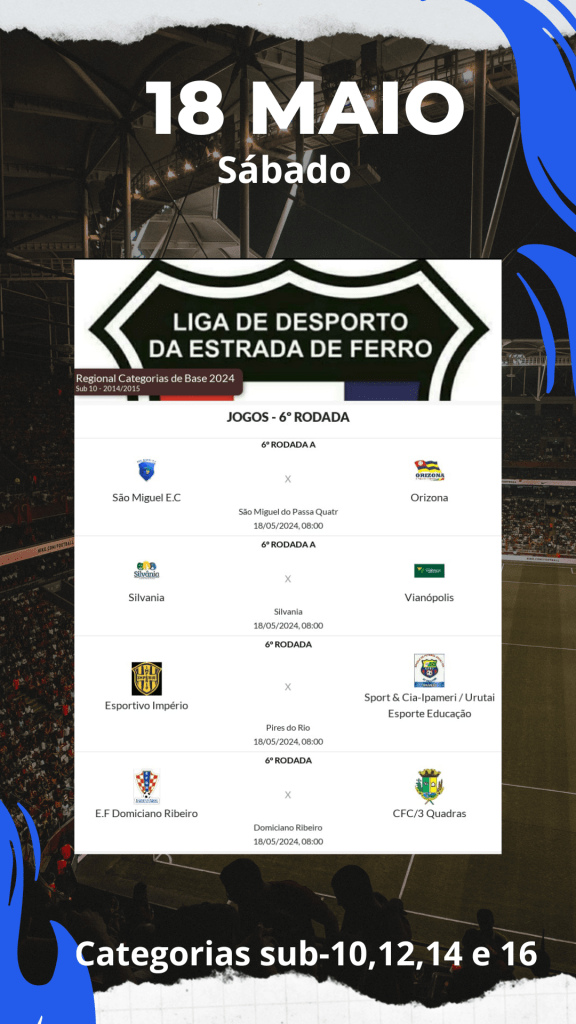 Assista também Vianópolis x São Miguel do Passa 4, jogo pela estrada de ferro categoria de base