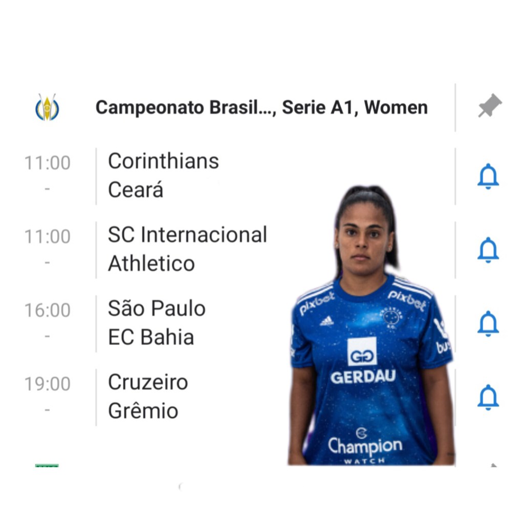 Hoje tem jogão Bahia x Cruzeiro, pelo campeonato Brasileiro feminino e a jogadora Vianopolina Vanessinha vai estar em campo logo mais as 15:00 horas.