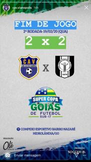 O Clube Atlético Vianópolis vence o forte time do Aparecidense pelo placar de 1 x 0, em jogo válido pela semifinal da Super Copa Goias Sub-17. Com gol do camisa 11 Breno CAV garantiu vaga na final do certame no próximo sábado. Parabéns a toda equipe. Estamos na torcida em busca da taça. Por Agda Maria.