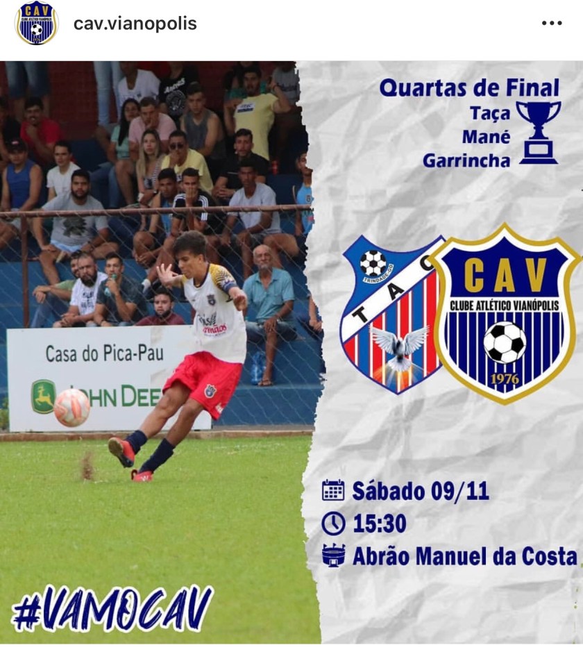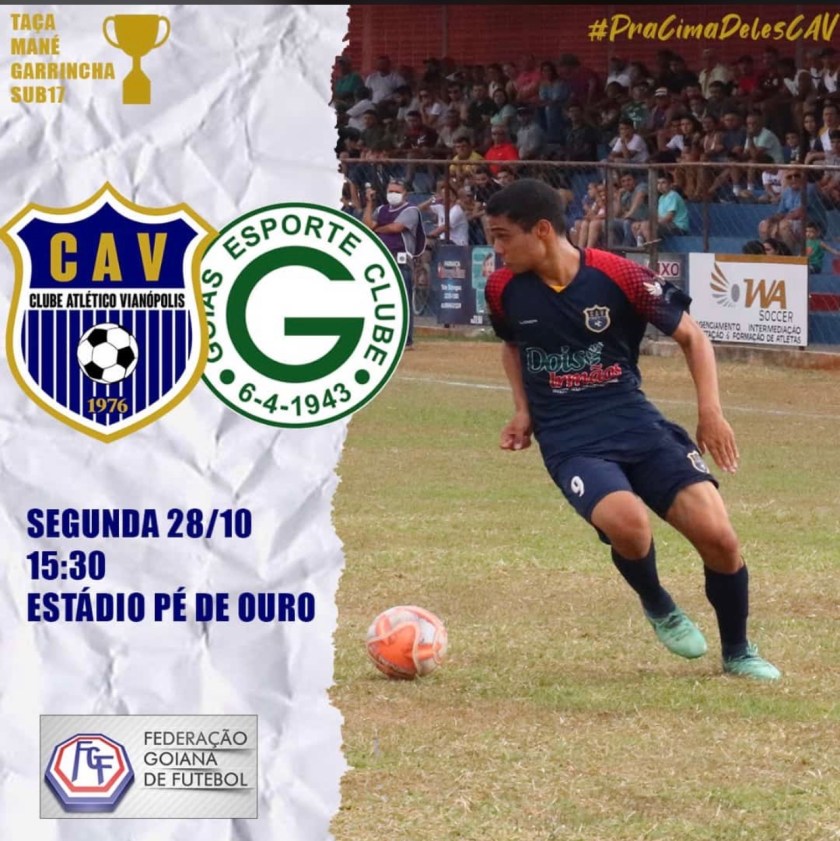 Hoje logo mais às 15:30 horas no estádio municipal pé de Ouro, o CAV recebe a equipe do Goias esporte Clube, jogo válido pela taça Mane Garricha sub-17. Portanto venha torce para o time de nossa cidade.