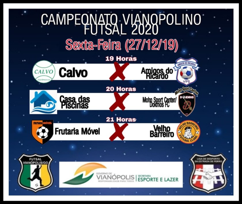 Começou na noite de ontem 26-12-2019, o campeonato Vianopolino Futsal 2020, campeonato Organizado pela secretaria municipal de esportes e lazer !!!