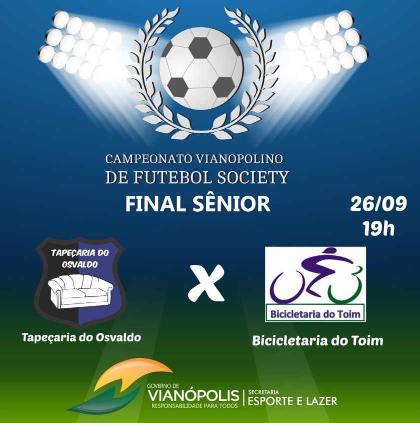 Nesta quinta-feira 26-09-2019 vai acontecer a grande final do Campeonato Vianopolino de futebol 7 Society nas categorias Adultos, Masters e Sênior, horário de início às 19:00 horas.