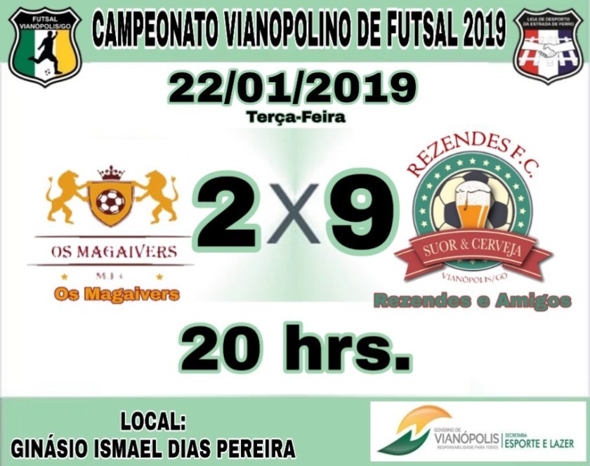 Na noite de terça-feira 22-01-2019 aconteceu mais uma rodada do campeonato Vianopolino municipal de futsal 2019.