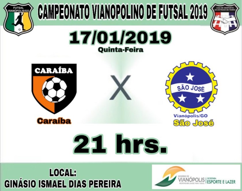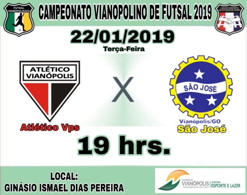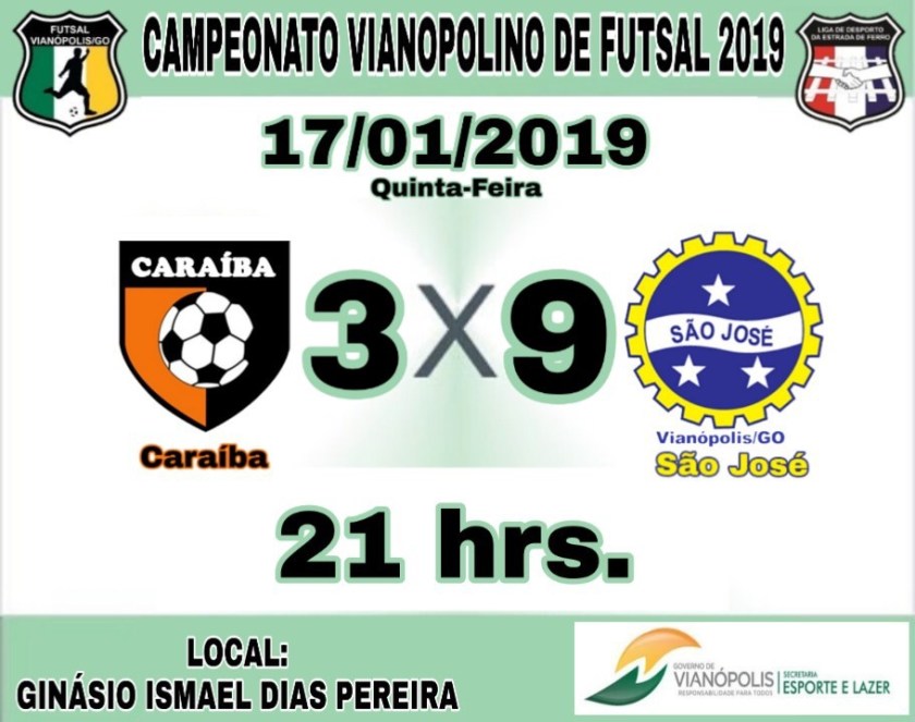 Hoje quinta-feira 17-01-2019 tem a terceira rodada do campeonato Vianopolino municipal de Futsal 2019 com Três jogos no ginásio Ismael dias Pereira confira os jogos abaixo: