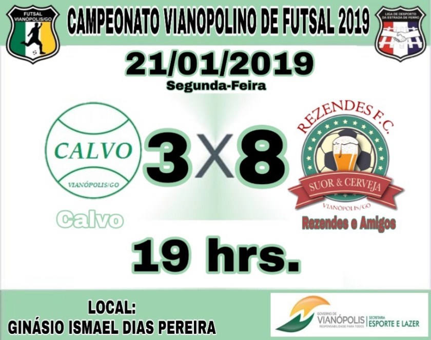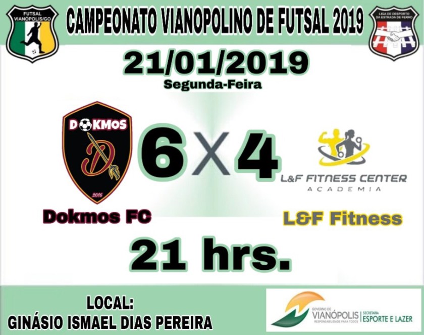 Resultados de ontem segunda-feira dia 21-01-2019, ontem tivemos a 4ª Rodada do Campeonato Vianopolino municipal de Futsal 2019.