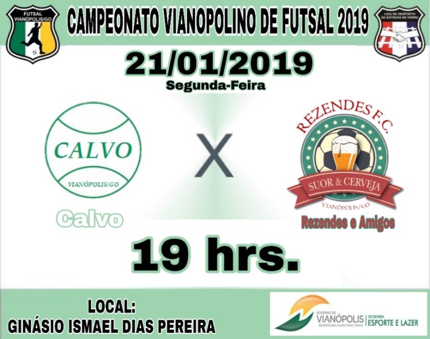 Na noite de hoje sexta-feira 18-01-2019 é a estreia da Categoria Sênior do Campeonato Vianopolino de futsal 2019