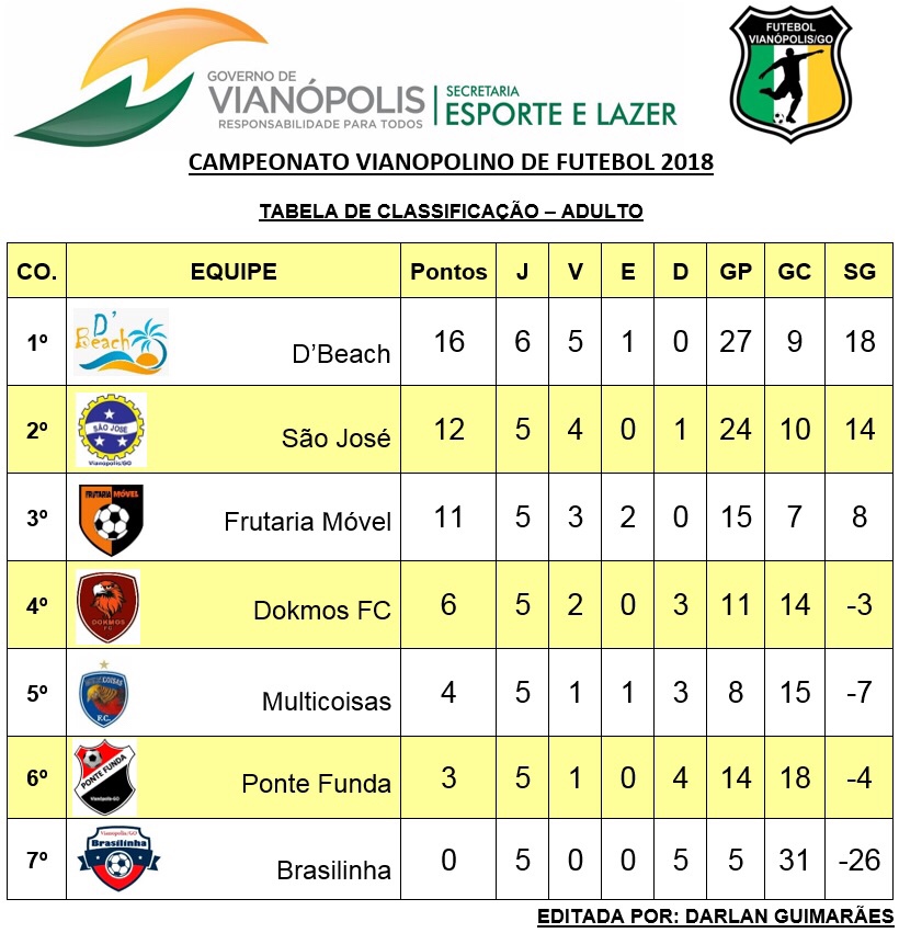 Domingo 29/07/2018 tem a última rodada da primeira fase do campeonato Vianopolino municipal de futebol de campo 2018, com três equipes já classificadas e com três equipes com possibilidade de classificação pela quarta vaga vai pegar fogo essa rodada.