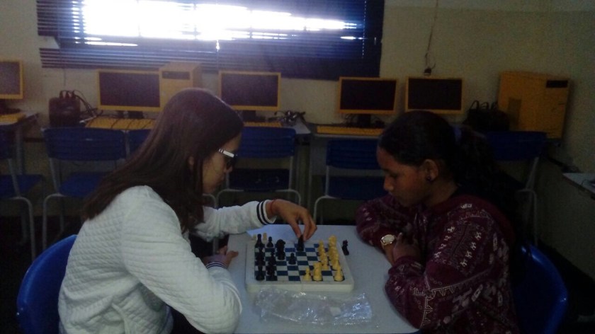 No xadrez categoria infantil a vencedora foi da Escola Estadual Americano do Brasil a aluna Fernanda de Adriano na foto abaixo de blusa branca.