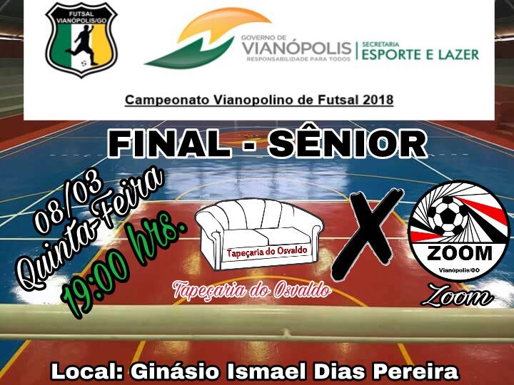 Acontece na noite de sexta-feira no ginásio Ismael Dias Pereira em Vianópolis-GO a grande final do futsal 2018 categoria Adulto