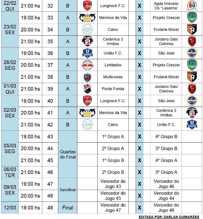 Gols do Projeto Crescer 4 de Anderson, 4 de Jeferson, 1 do número 8, 2 de Guilherme, 3 de Rian, 1 de Luiz e 1 de Seni Junior.