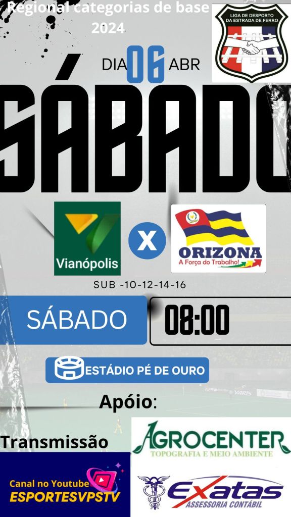 Jogos de hoje no estádio Pe de Ouro de Vianópolis, jogos do Regional de categoria de Base 2024, da liga de desporto da estrada de ferro!!!